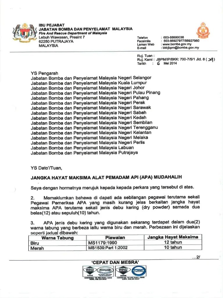 Contoh Surat Kepada Bomba Untuk Tatacara Pelupusan Alat Pemadam Api. Https Jkt Kpkt Gov My Jkt Resources Pdf Pekeliling 20jkt 2017 Garis Panduan Amalan Baik Pengurusan Bahan Kimia Di Pbt Pdf. Peralatan Pencegah Kebakaran 3.